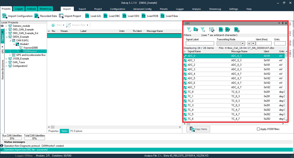 Select the Import tab and click Load DBC.