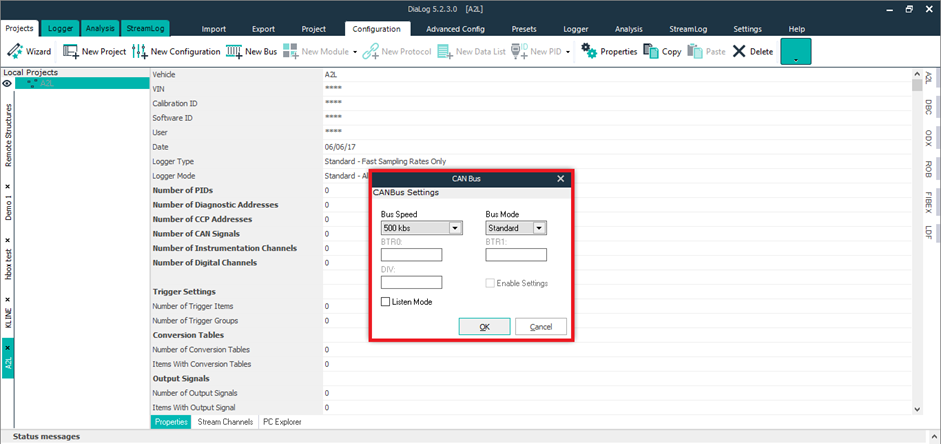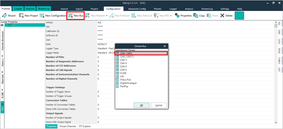 * You can have multiple buses in a single configuration. You can log OBD, A2L or ODX data along with K-Box.