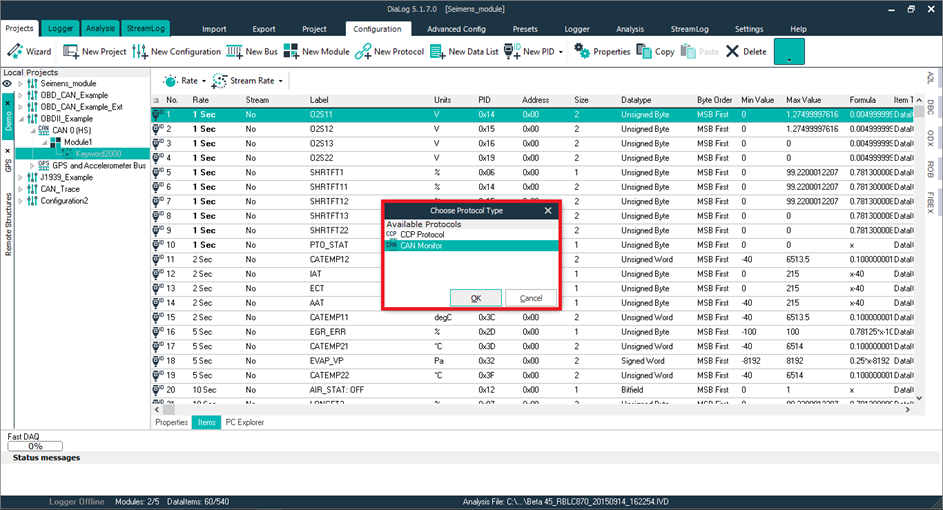 &#x20;Select the CAN Monitor protocol.