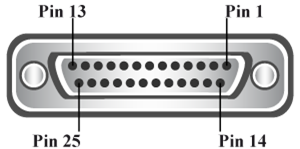 The K PT connector is a Female 25-pin Standard D-Type Connector with nuts.