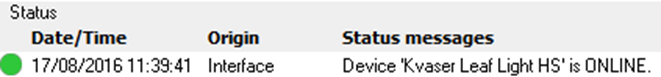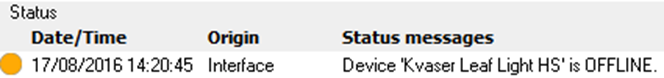 If the status message at the bottom of the screen shows that the Kvaser device is 'OFFLINE', the user should investigate the cause of this problem; possibilities include: