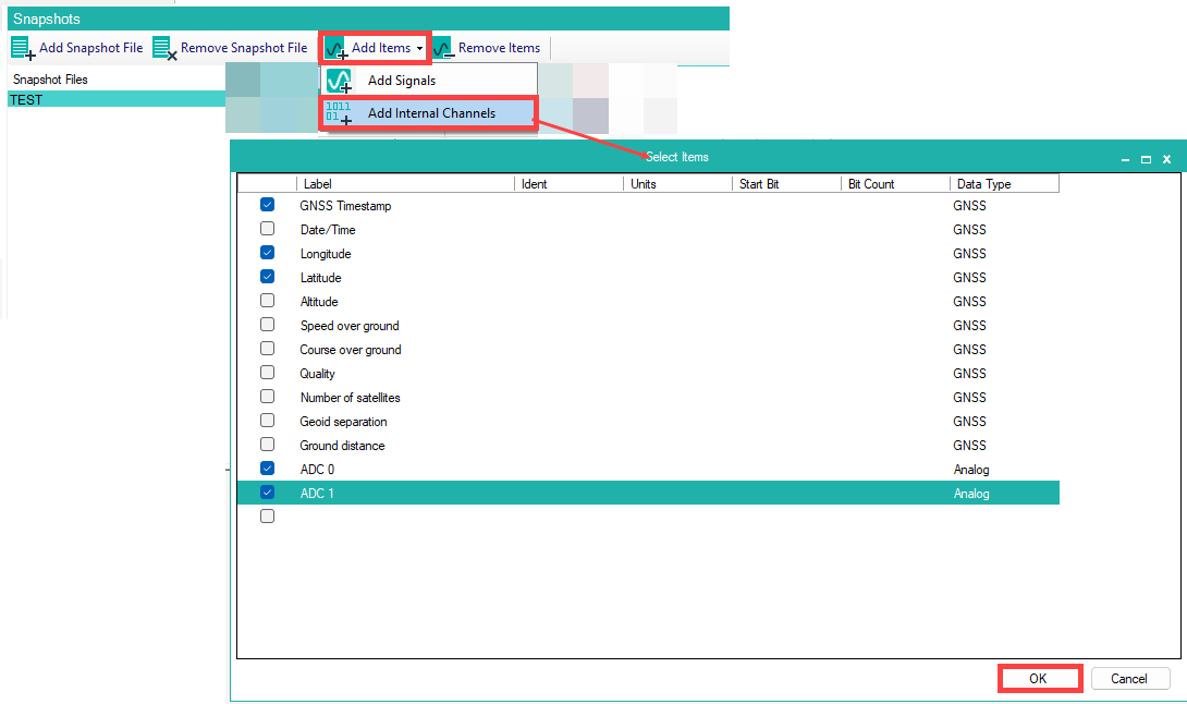 Once the items are added to the snapshot file, specify the CAN source for each item separately.