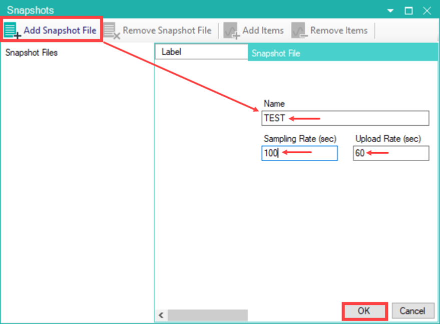 * **Add Snapshot File:** this allows the user to add and name a new snapshot file.