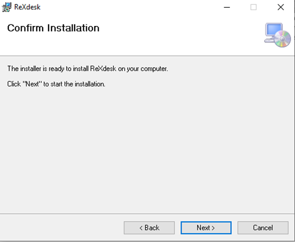 * To continue with the installation of ReXdesk on your system, click 'Next'