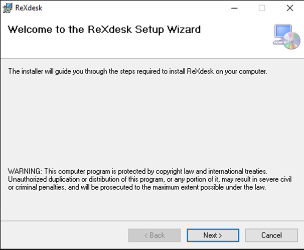 To begin the installation of the ReXdesk Software, open the installer by running the set-up file.